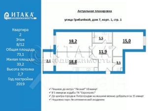 1-92722 Продаётся современная двухкомнатная квартира в новом жилищном комплексе комфорт класса "Life Лесная". Квартира двухсторонняя, просторная кухня 18.8 м. с застеклённой лоджией и комната 18.2 выходят на ул. Грибалёвой, окна комнаты 15 м. выходят в пространство внутреннего двора.