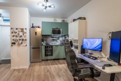 В квартире остается вся мебель, оборудованная кухня: духовка, плита, вытяжка, посудомойка, холодильник, микроволновка. Кондиционеры в спальне и в гостиной. Также стиральная машина, телевизор, зоны для хранения и тд.