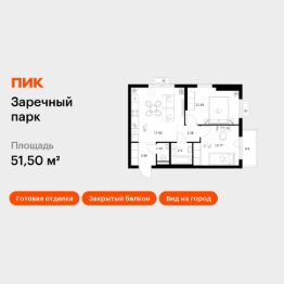 Продаётся 2-комн. квартира площадью 51,5 кв.м на 13 этаже 24 этажного дома (Корпус 5, Секция 2) проекта ПИК Заречный парк. Светлый просторный подъезд на уровне земли, функциональная планировка, большие окна, c отделкой.
