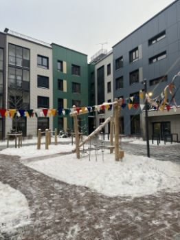 Малоэтажный жилой комплекс, приватные закрытые внутренние дворы, удобные сквозные парадные.
