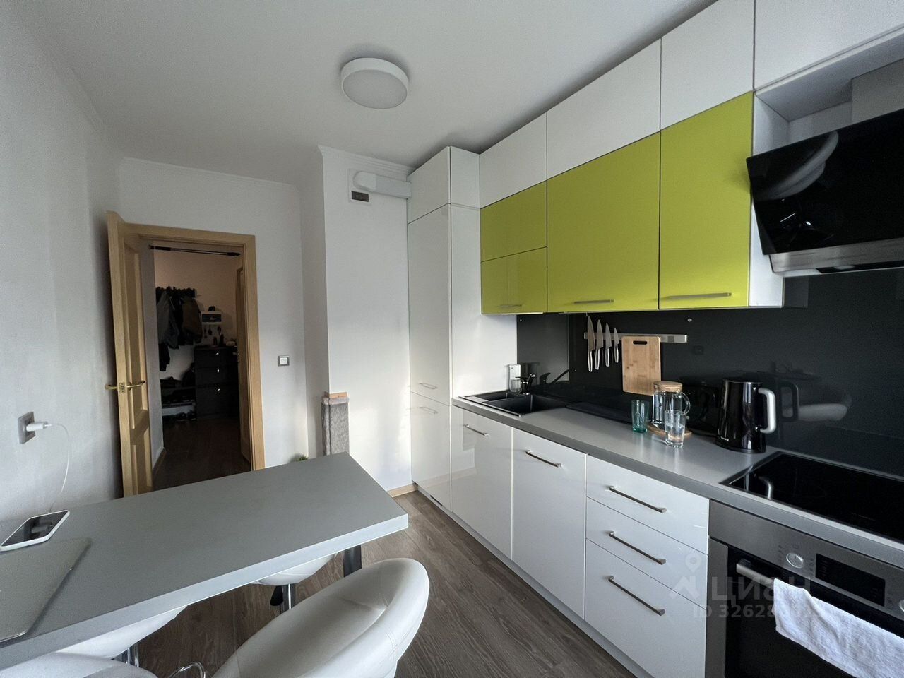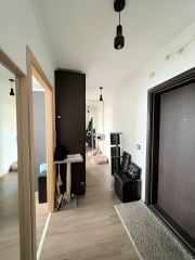 Продается двухкомнатная квартира. Две просторные комнаты и большой коридор, сделана гардеробная. По всей квартире поклеены обои под покраску. Встроенная кухня, мебель в ванной, мебель в спальне (частично), мебель в коридоре, гардеробная остается в квартире, в том числе техника Bosch (встроенный холодильник). Один собственник с 2014 года.