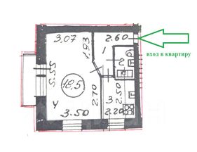 Общая площадь квартиры 30.6 кв.м. (плюс балкон).