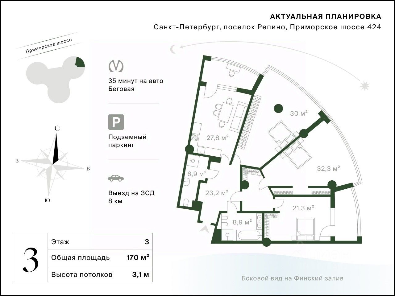 Арт. 128652468 Апартаменты в премиальном комплексе Crystal на первой береговой линии. Панорамные окна, прямой выход к набережной и собственный SPA-центр — готовое решение для жизни у Финского залива.