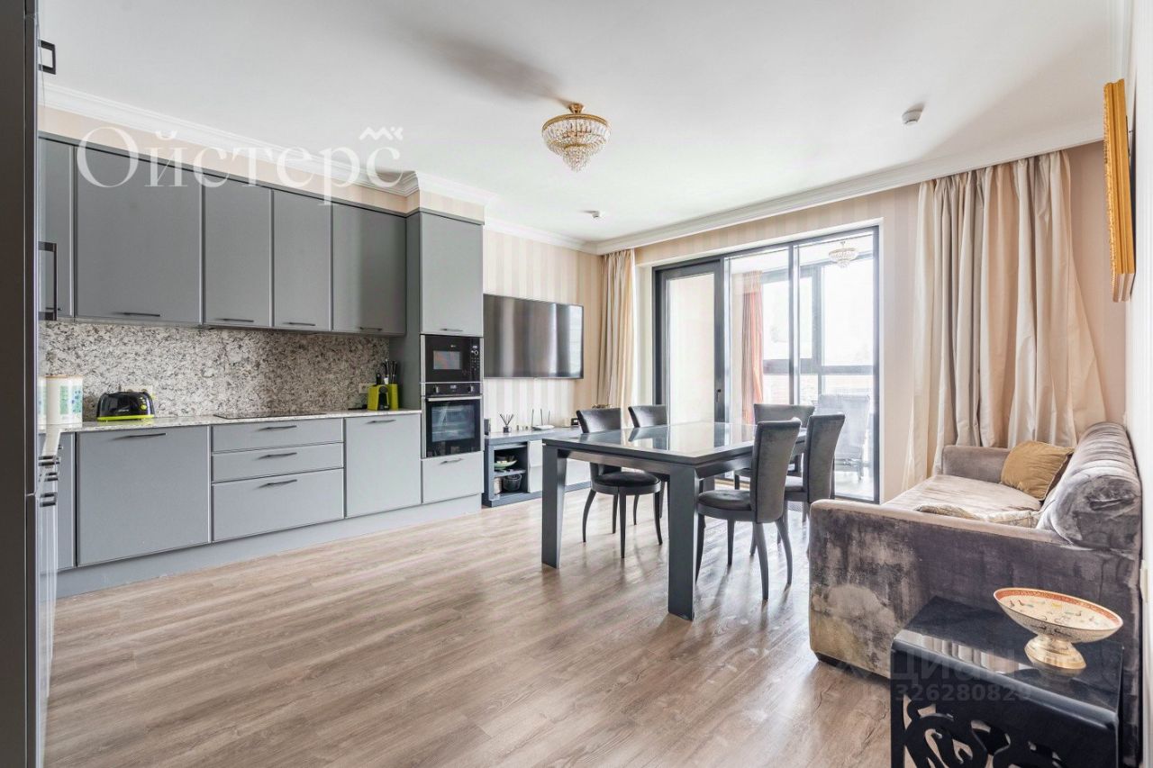 В апартаментах выполнен ремонт с использованием европейских материалов. Панорамное остекление в пол превращает квартиру в смотровую площадку — из окон открывается боковой вид на залив. Квартира продаётся с мебелью и техникой — можно въезжать сразу после сделки.