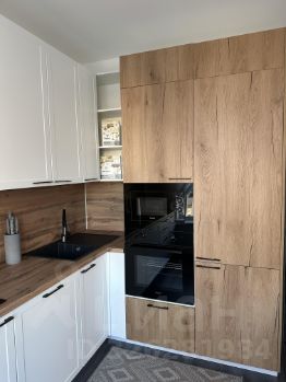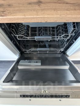 Имеется вся нужная бытовая техника: стиральная машина, встроенный холодильник, встроенная посудомойка, встроенная микроволновая печь, вытяжка, варочная поверхность, электрический чайник, утюг.