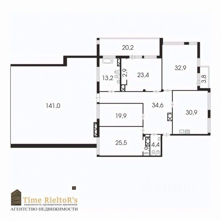 КВАРТИРА 189,6 кв.м (только площадь квартиры) + терраса 141 кв.м + застекленная лоджия 20,2 кв.м и застекленный балкон 3,8 кв.м.
