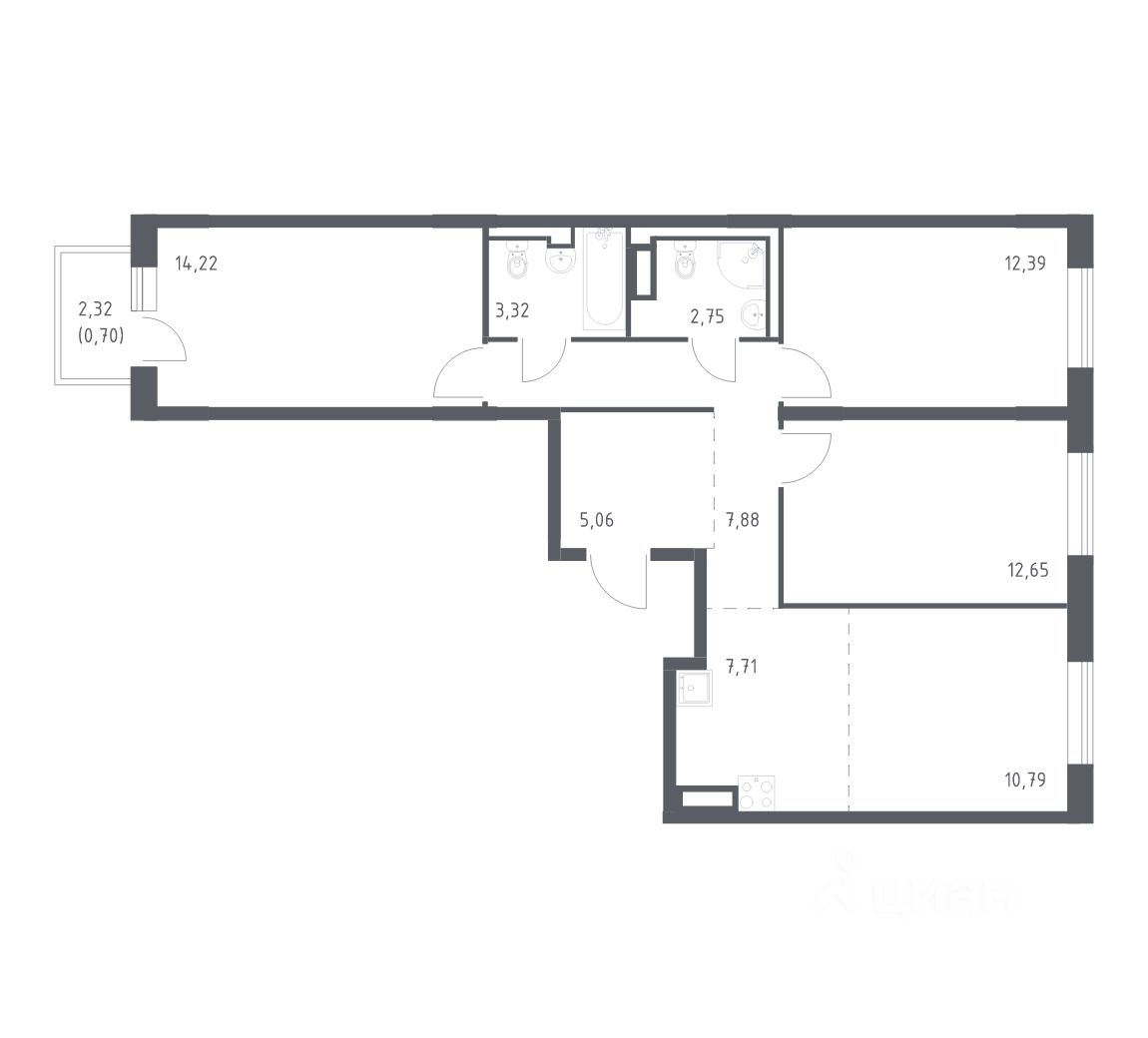 Общая площадь77,47 м²