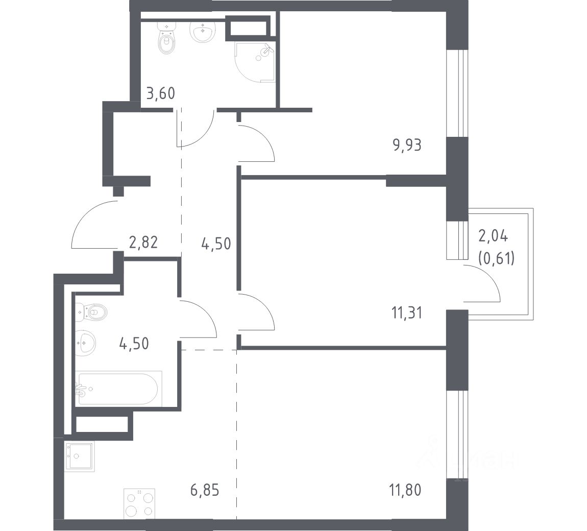 Общая площадь55,92 м²