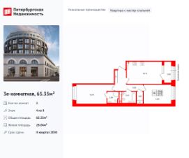 Уникальная, функциональная европланировка, большая кухня-гостиная 19.15 м², просторная прихожая 8.36 м². Общая площадь квартиры - 65.35 м², жилая 28.84 м², высота потолка 2.7 м.