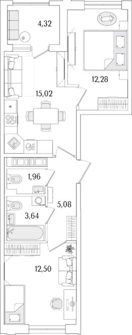Продаётся 2-комнатная квартира в строящемся доме (Корпус 1), срок сдачи: II-кв. 2028, общей площадью 52.64 кв.м., на 12 этаже. Новый жилой комплекс от "РСТИ" у метро Бухарестская.