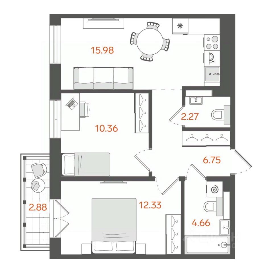 1 совмещенный, 1 раздельный