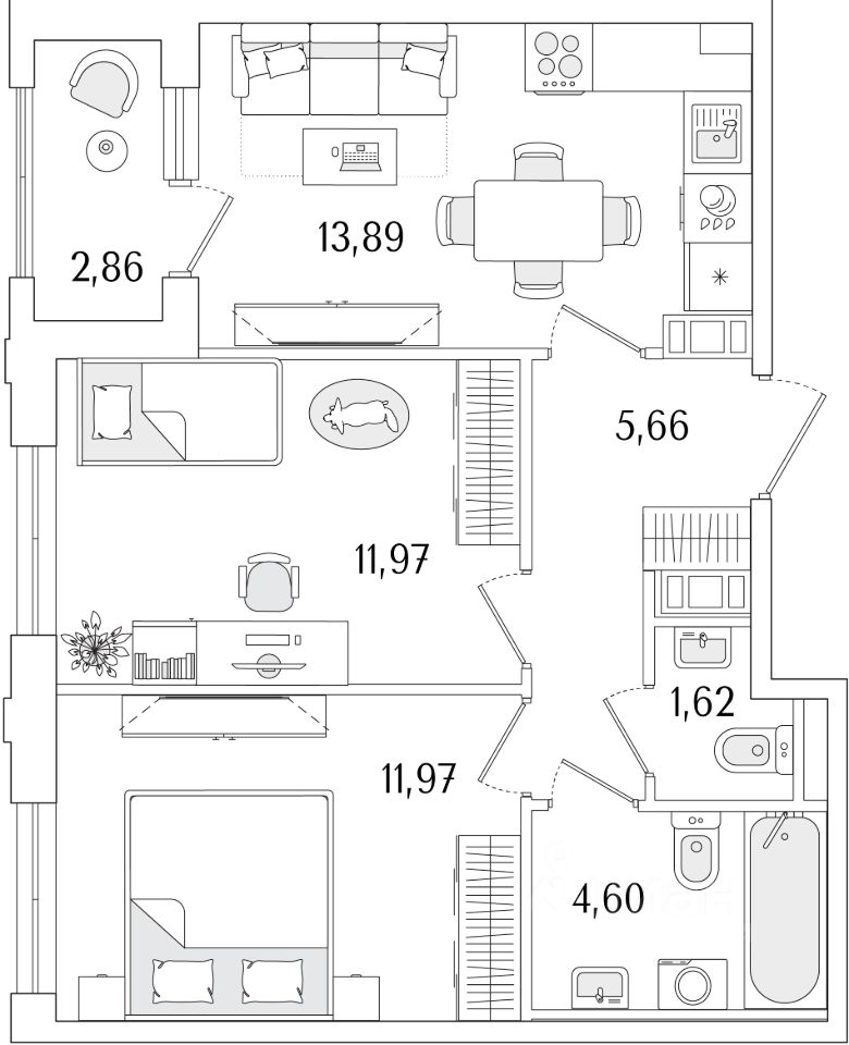 2-комн. квартира, 51,14 м²