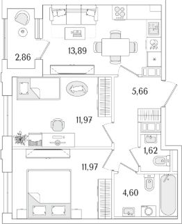 2-комн. от 45,45 м²