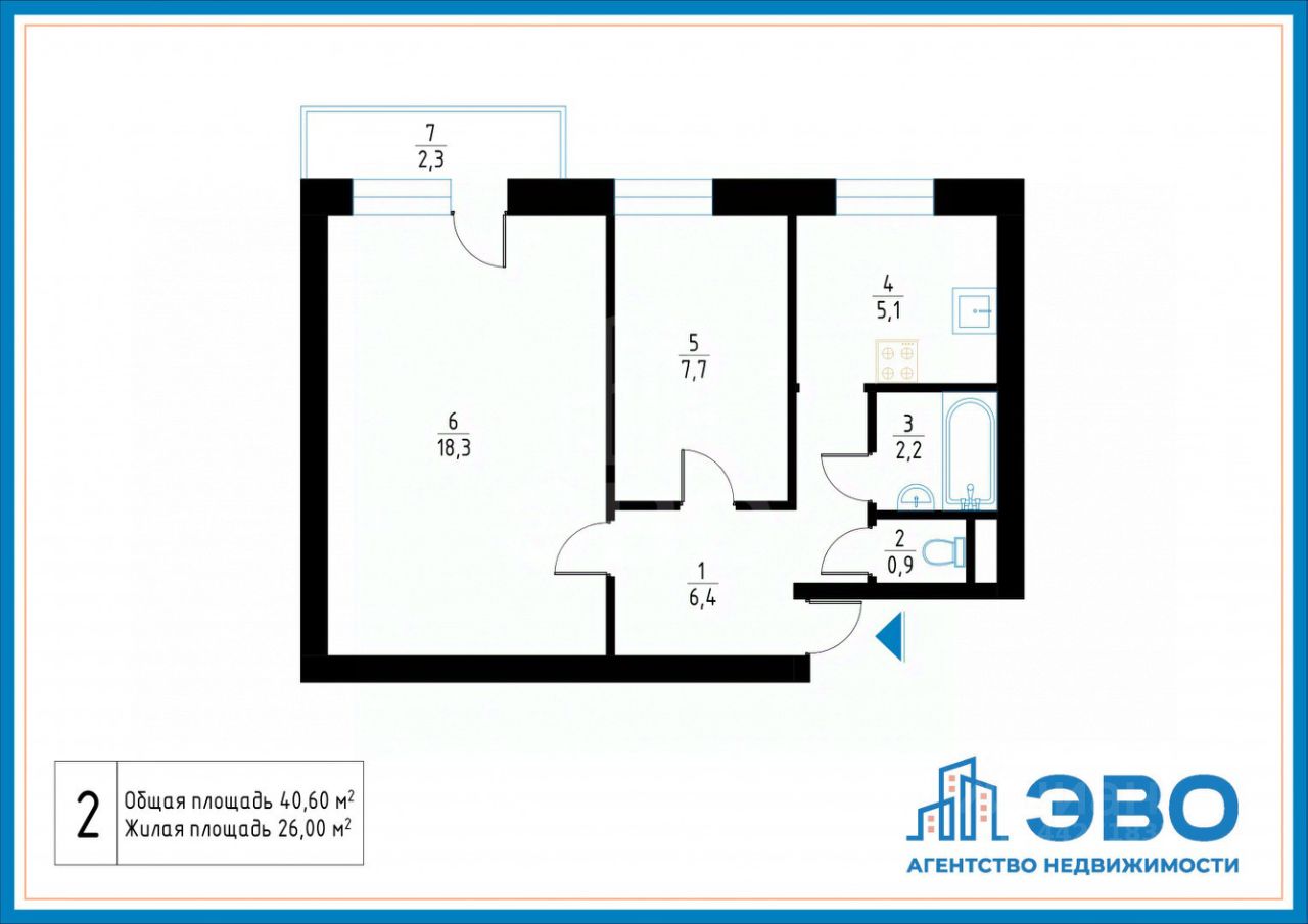 изолированная планировка, площадь комнат 18,3 и 7,7 кв. м