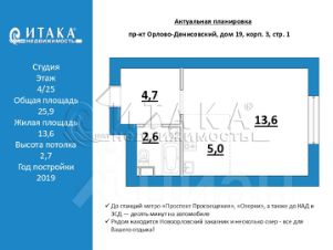 1-92732 Продается светлая просторная студия 25,9 кв.м. в ЖК Орловский парк. 5 этаж. Окна на ЗАПАД. Мебель по индивидуальному заказу и техника для Вас!