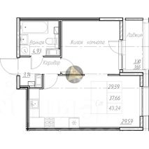 - Жилая комната + зона кухни 29.59 м2