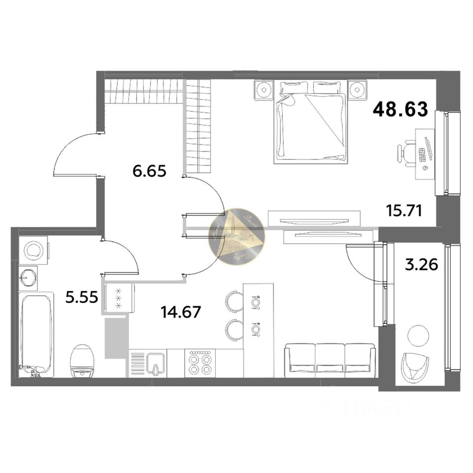 - Общая площадь квартиры 48.63 м2