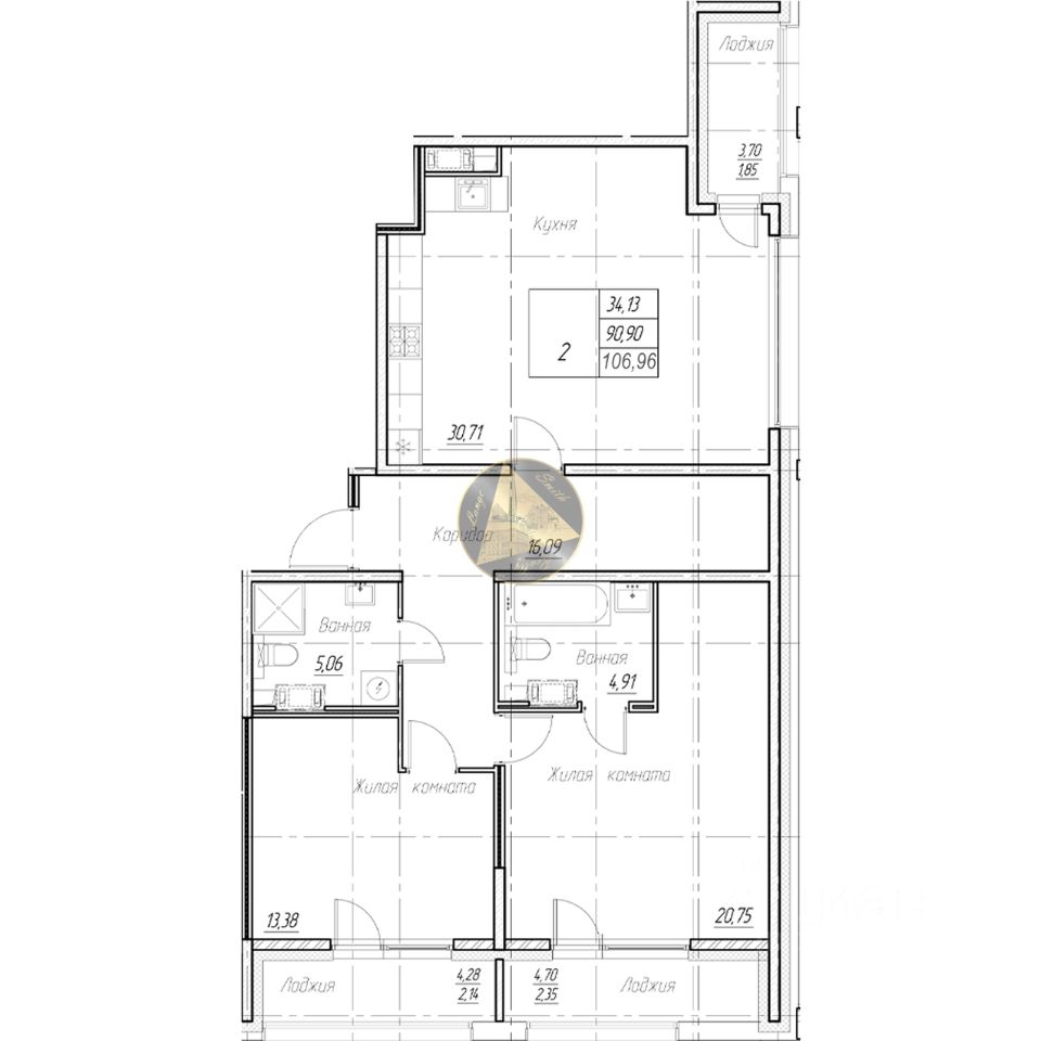 - Общая площадь квартиры 106.96 м2