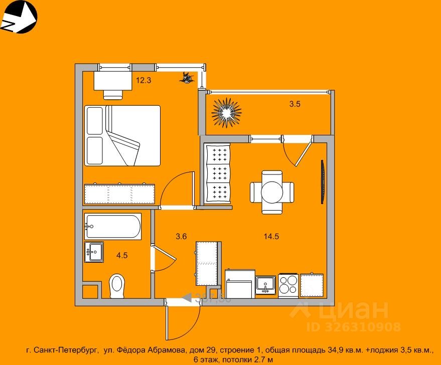 Продается стильная однокомнатная квартира в новом доме, расположенном в современном жилом комплексе. Общая площадь квартиры составляет 35 кв. м, она находится на 6 этаже 14-этажного дома, построенного в 2023 году. Высота потолков — 2.7 метра, что создает ощущение простора. До станции метро "Парнас" можно добраться на автомобиле всего за 8 минут.