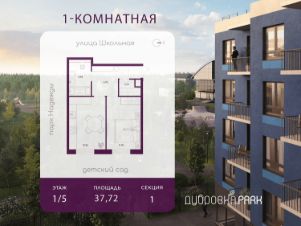 Квартира располагается на 1 этаже 5-этажного дома в ЖК Дубровка.Park.