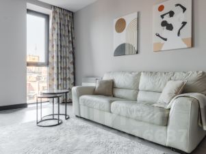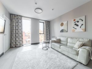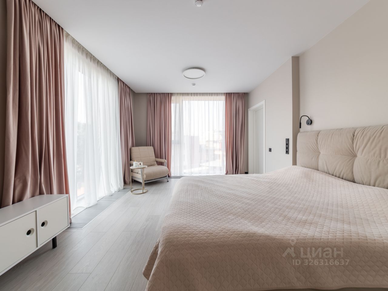 Апартаменты включают в себя: просторную комнату 22 м2 с личным санузлом 4 м2 и гардеробной 4м2, кухню-гостиную 28 м2, гостевой санузел 3 м2;
