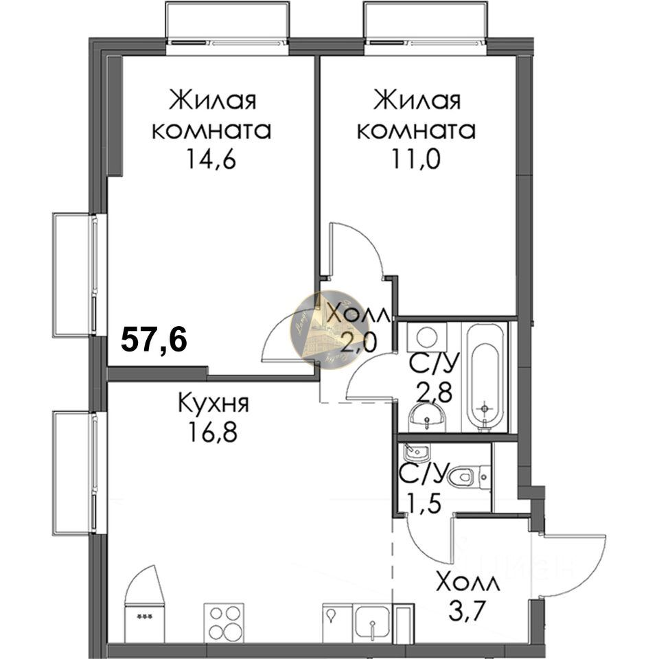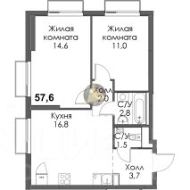 - Общая площадь квартиры 57.6 м2
