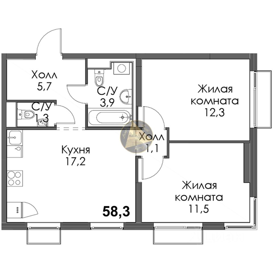 - Общая площадь квартиры 58.3 м2