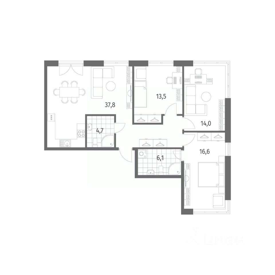 в Новый Питер от компании ГК "ТРЕСТ". Площадь кухни 37.8 м². Жилой квартал расположен в пос. Новоселье. Прописка Ленинградская область.