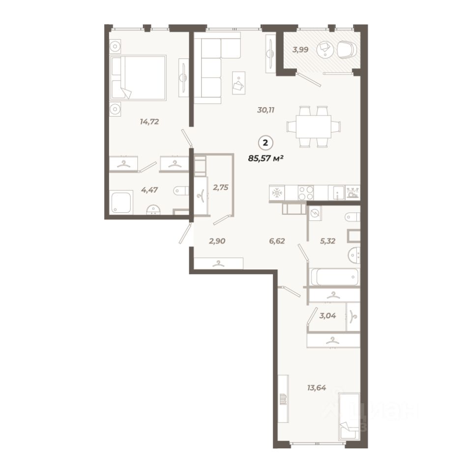 Продаётся 2-комнатная квартира в строящемся доме (Дом 21В), срок сдачи: III-кв. 2027, общей площадью 85.58 кв.м., на 9 этаже. ЖК "Знатный" - новый жилой комплекс в престижном Московском районе Санкт-Петербурга. Дом разной этажности (10-12 этажей), 9 минут пешком до метро "Московские ворота" и "Электросила". Предчистовая отделка, подземный паркинг, благоустроенный двор, детский сад и школа в составе проекта.