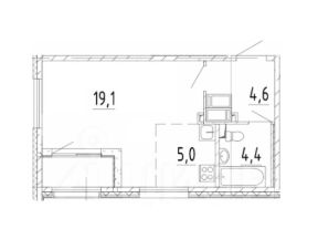 Планировка продуманная и функциональная: прихожая с местом для гардеробного шкафа, просторная светлая комната, совмещающая кухню и спальню, совмещенный просторный санузел, а также собственная лоджия.