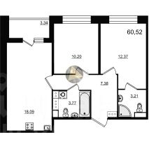 Квартира находится на 3/12 этаже. Общая площадь квартиры 60.52 м2.