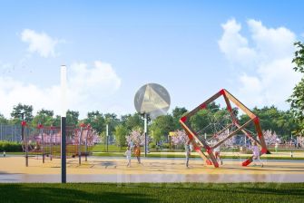 3. На территории комплекса находится протяженный пешеходный променад с гейзерными фонтанами, детскими и спортивными площадками, велодорожками и зонами для спокойного отдыха.