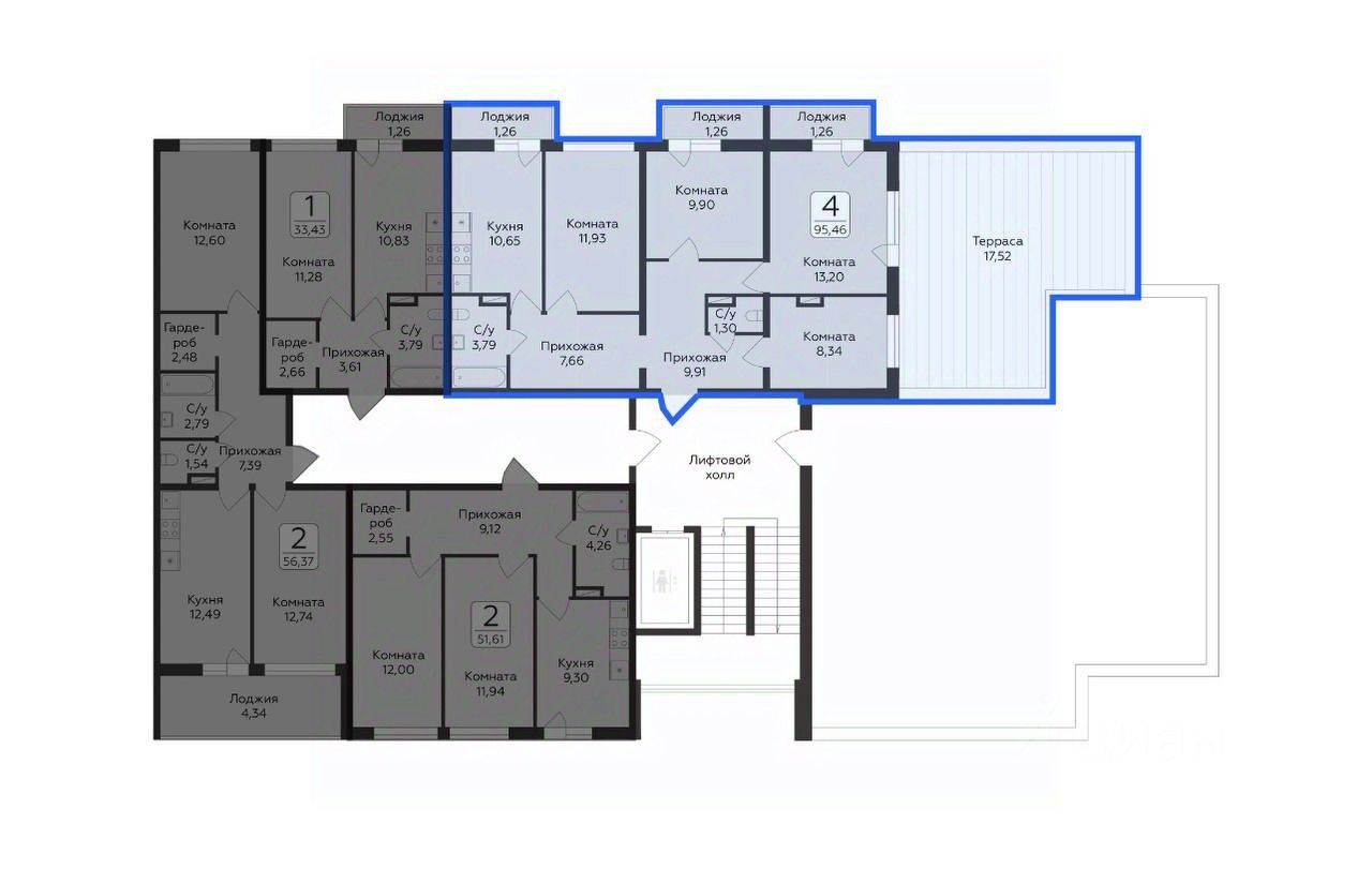 Помещения оснащены увеличенными окнами, благодаря которым пространство наполнено светом. Высота потолков составляет 2,72 м. Квартира с подчистовой отделкой, возможен дозаказ чистовой.