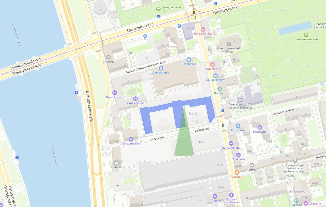 В пешей доступности сразу несколько набережных, Гренадерский и Сампсониевский мосты, метро Выборгская, Финляндский вокзал.