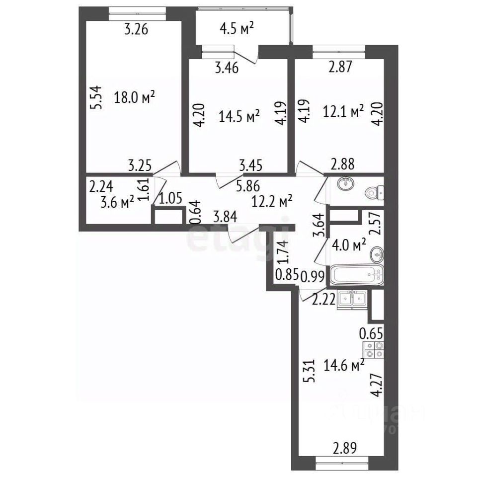 Индивидуальный теплосчетчик, два стояка по ХВС и ГВС. Застекленная лоджия станет прекрасным местом для отдыха.