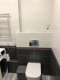 При получении квартиры с черновой отделкой был сделан ремонт с использованием современных дорогостоящих материалов - выровнены все поверхности: вручную отштукатурены и отшпаклёваны стены под 0, выведены углы под 90 градусов, произведена замены стеклопакетов фирма Rehau, сделан теплый пол на кухне, установлена дорогостоящая немецкая сантехника. Квартира очень теплая отключено отопление.