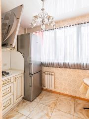 Интерьер выполнен в спокойных тонах, установлены красивые межкомнатные двери, люстры, текстиль — всё создаёт ощущение домашнего уюта.