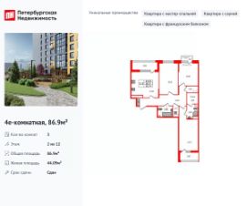 Продается уютная, семейная 3-комнатная квартира от застройщика в жилом комплексе "Прайм Приморский" в динамичном Приморском районе.