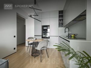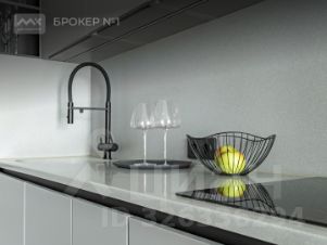 Внимание к деталям: теневые плинтуса, теневые металлические настенные рейки, двери скрытого монтажа. Люстра Foscarini Caboche доставлена из Италии точно, как в музее Фаберже. Кухонная техника немецкого монобренда Kuppersberg, рабочая поверхность из натурального камня, встроенная система очистки воды. Установлены датчики протечек и контроля напряжения.