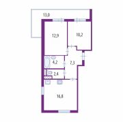 Все комнаты изолированные: спальня 12.9 и детская 10.2 кв.м, шикарная кухня-гостиная 16.8 кв.м, оборудованная гардеробная, раздельные просторные санузлы;