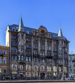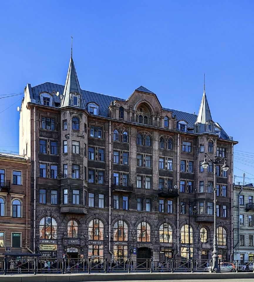 В 1912 г. архитектор М.Л. Крицкий построил здесь дом меблированных комнат с двумя торговыми этажами, ставший собственностью купчихи А.И. Андреевой. На фасаде дома, оформленном в архитектуре неоклассики, выделяются два мощных трехоконных эркера, охватывающие третийшестой жилые этажи и увенчанные островерхими башнями; центральная ось фасада выделена жилой фронтошпицей сложной формы.