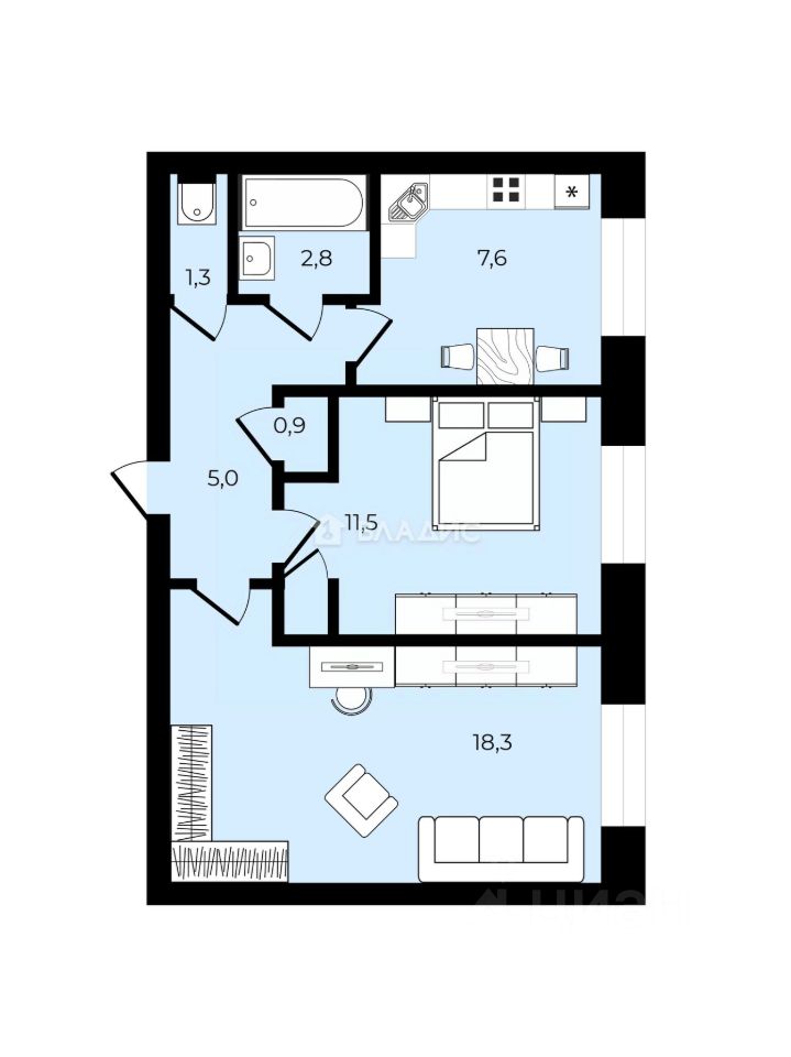 -Две просторные комнаты 18,3 и 11,5 м², а так же широкая кладовка, которая поможет вам сэкономить пространство