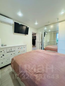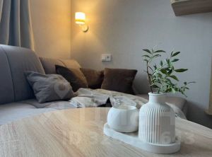Интерьер с дизайнерским ремонтом продуман до мелочей: встроенная кухня, системы хранения, зонированное освещение, натяжные потолки и кондиционер.