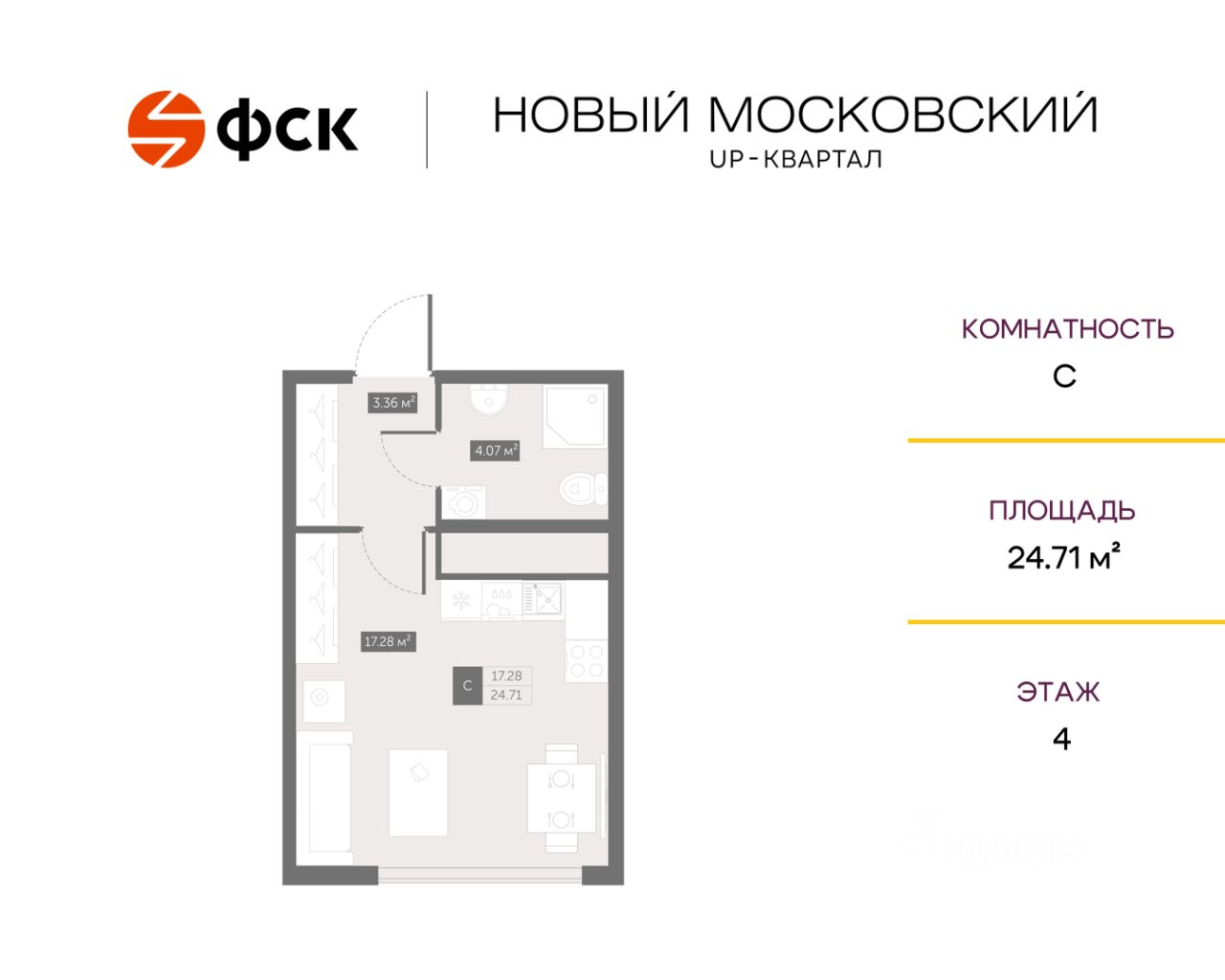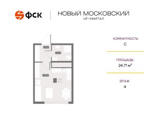 Прямая продажа от застройщика. Беспроцентная рассрочка. Студия в ЖК Up-квартал "Новый Московский" на 4-м этаже. Общая площадь 24,9. Без отделки.