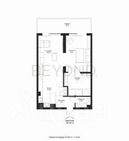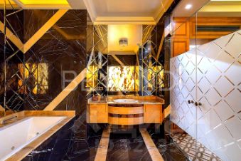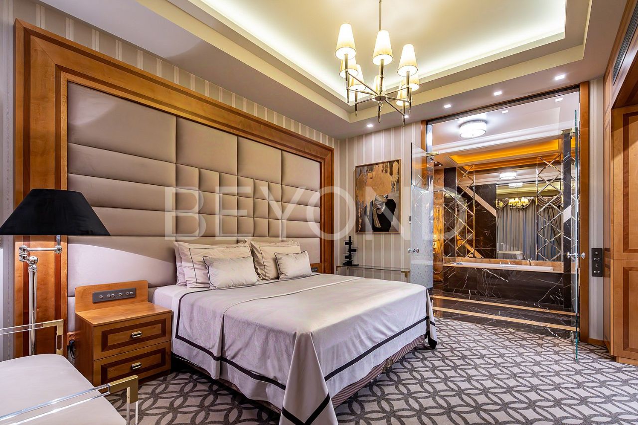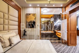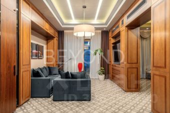Апартаменты площадью 83,7 кв. м, расположенные на 1 этаже, имеют выход на террасу и во внутренний двор. Резиденция включает в себя спальню, гостиную и зону кухни со встроенной техникой компании Miele, одним санузлом и гардеробной для хранения одежды. Отделка в санузле выполнена из мрамора и оникса, установлена сантехника производителя Villeroy Boch. В спальне и кухне-гостиной напольное покрытие сочетает ковролин и керамогранит, отделка стен выполнена из шёлковых обоев. Системы хранения из массива дерева подчеркивают элегантность и благородство внутренней отделки апартаментов.