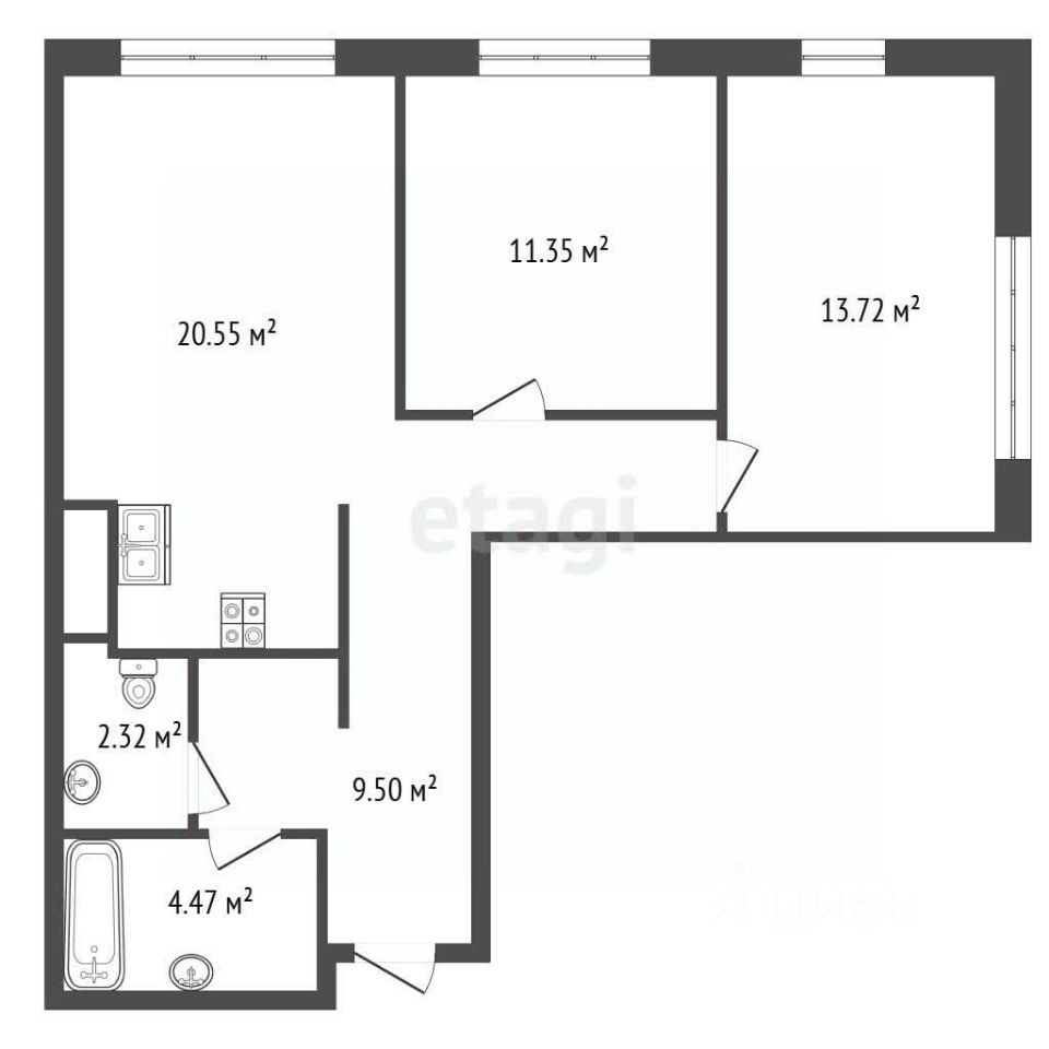 Идеальная планировка SMART: просторная кухня-гостиная 20,5 м² — сердце дома для встреч и вдохновения. Две изолированные спальни (14 и 11 м²) — гарантия личного пространства и уюта для каждого.