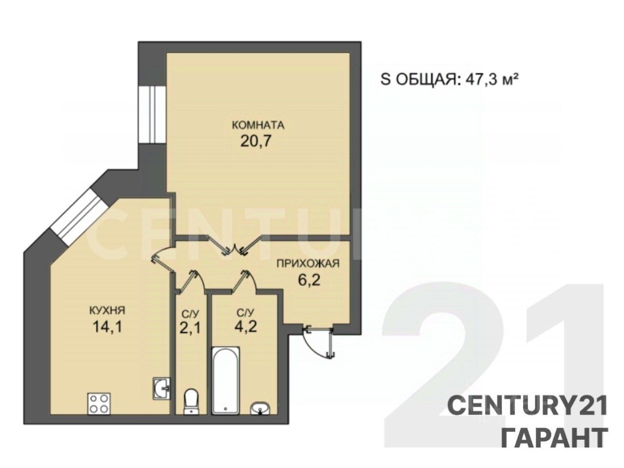 Просторная, большая комната с 2 окнами