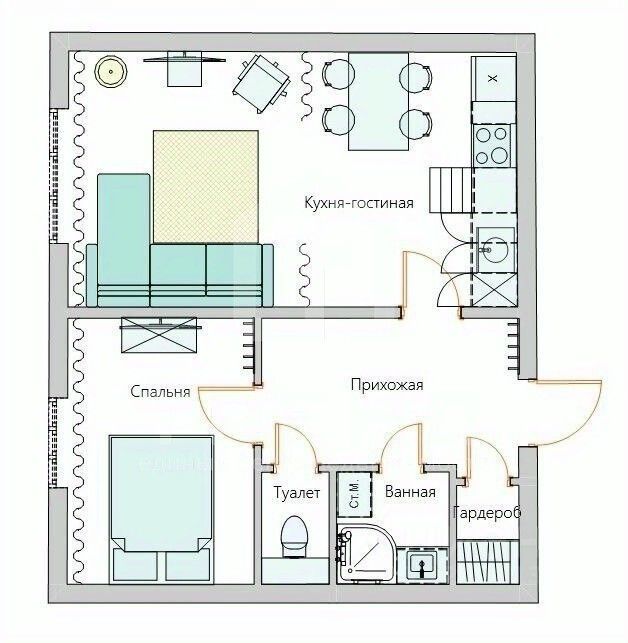 Жилая площадь составляет 16 кв. м, а кухня — 12 кв. м, что создаёт отличные возможности для обустройства функционального пространства. Окна выходят на улицу, а раздельный санузел добавляет удобства в повседневную жизнь.