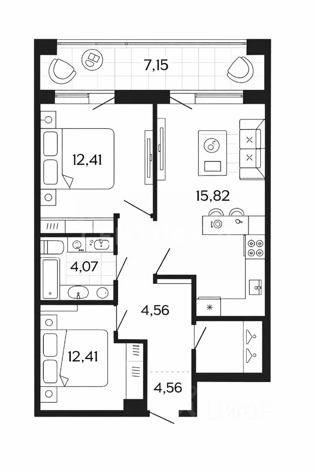 Просторная кухня-гостиная: 15,82 м² идеально для современной жизни.
