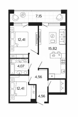 Приведенная площадь (с учетом лоджии): 40,44 м²